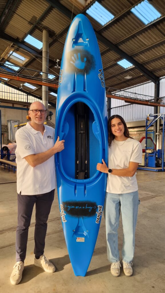 Lors du dĂ©moulage, la surprise fut totale : les logos de âGive Me a Hugâ, la marque dâAngĂšle, avaient Ă©tĂ© intĂ©grĂ©s au kayak. Une attention qui a profondĂ©ment touchĂ© la championne.
